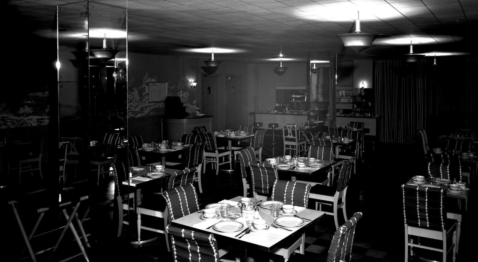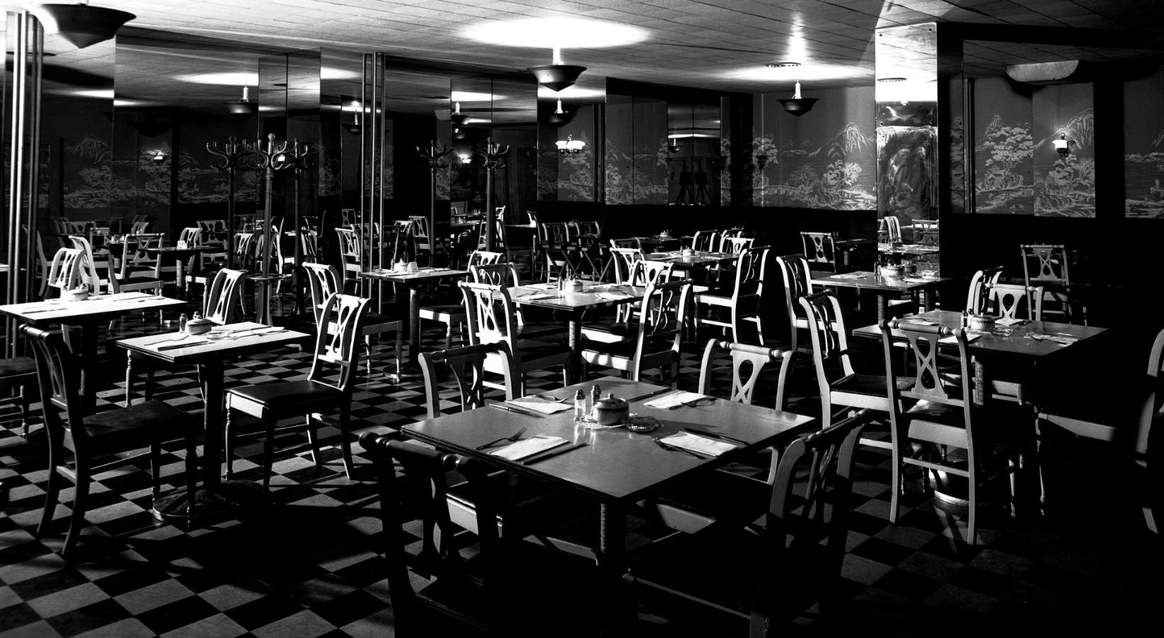 • a room with tables and chairs