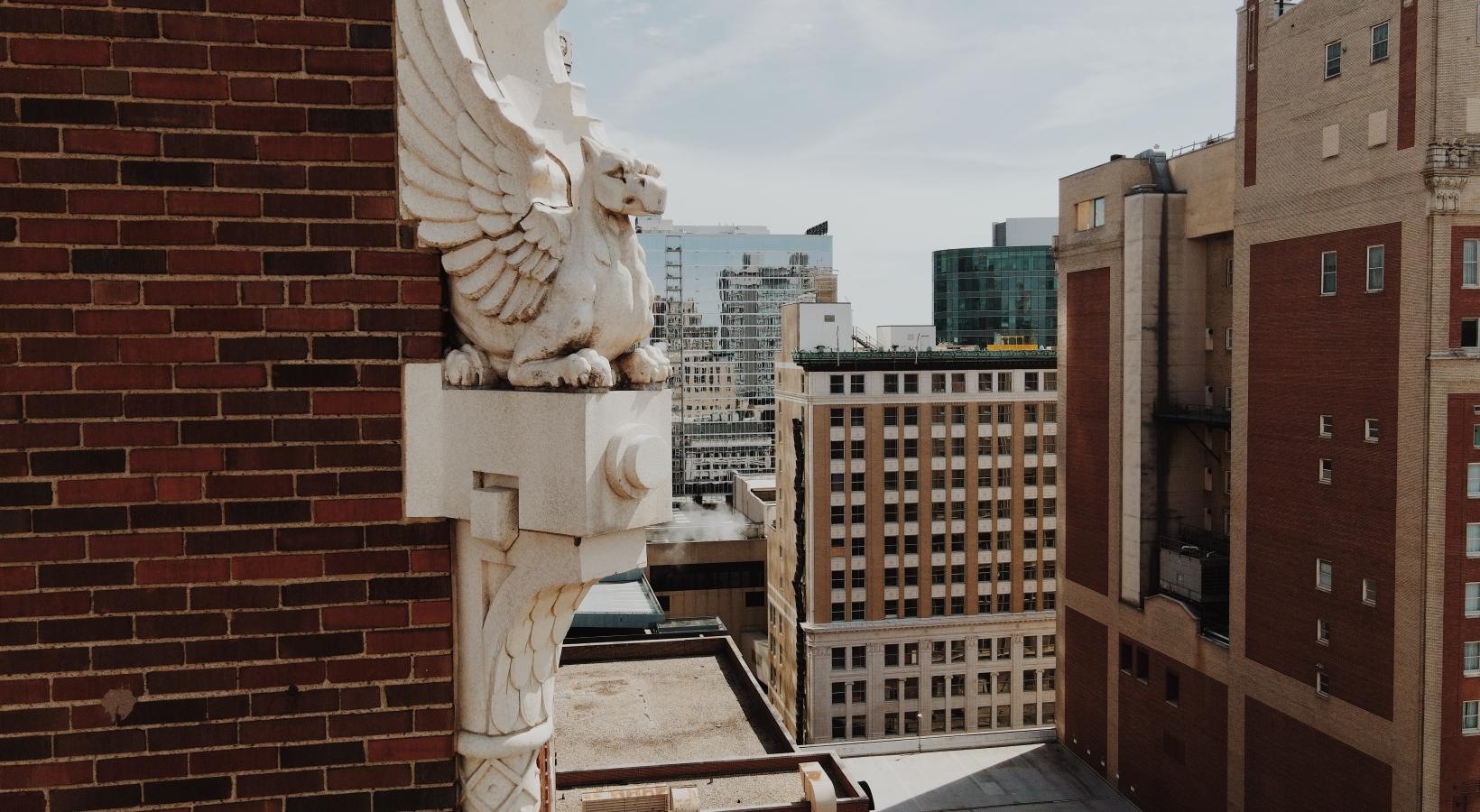 • a statue on a brick wall
