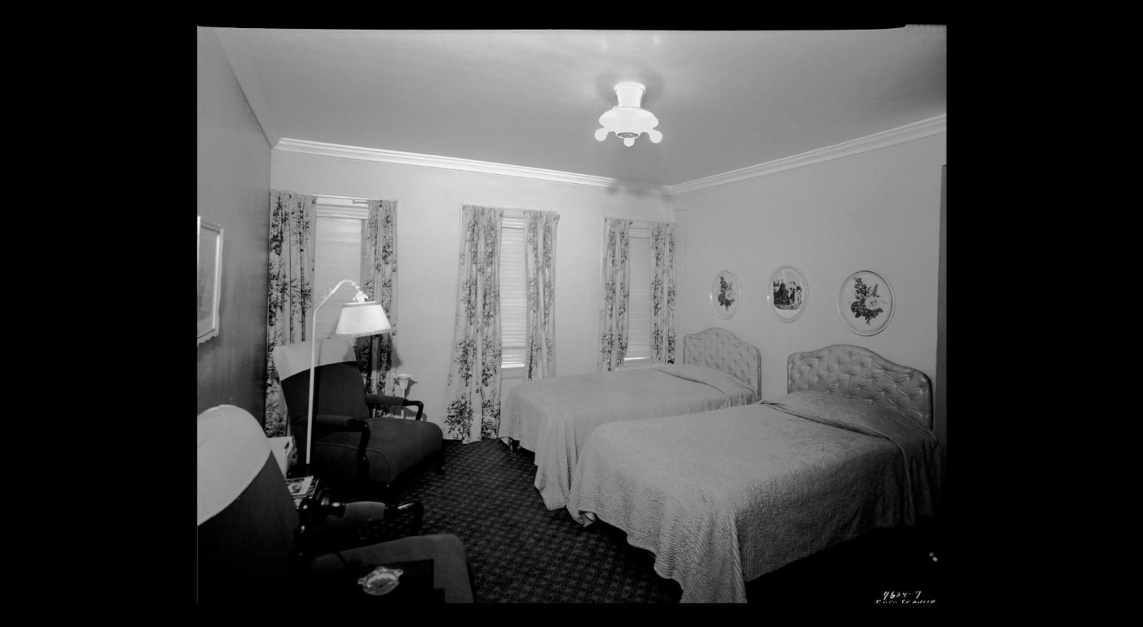 • a bedroom with a bed and lamps